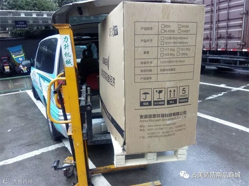 容恩R50B洗地机顺利装上车,准备安全送往目的地。