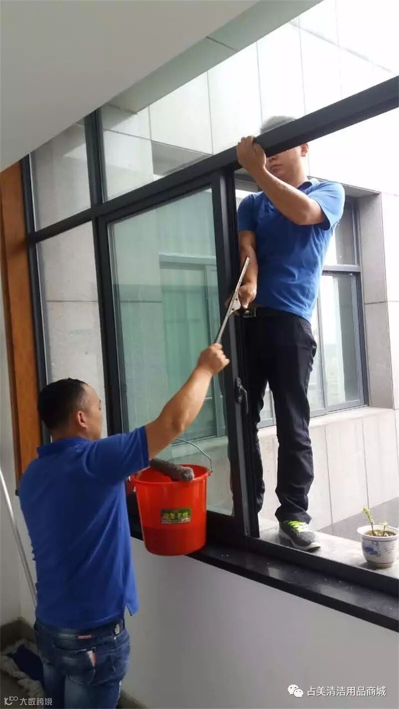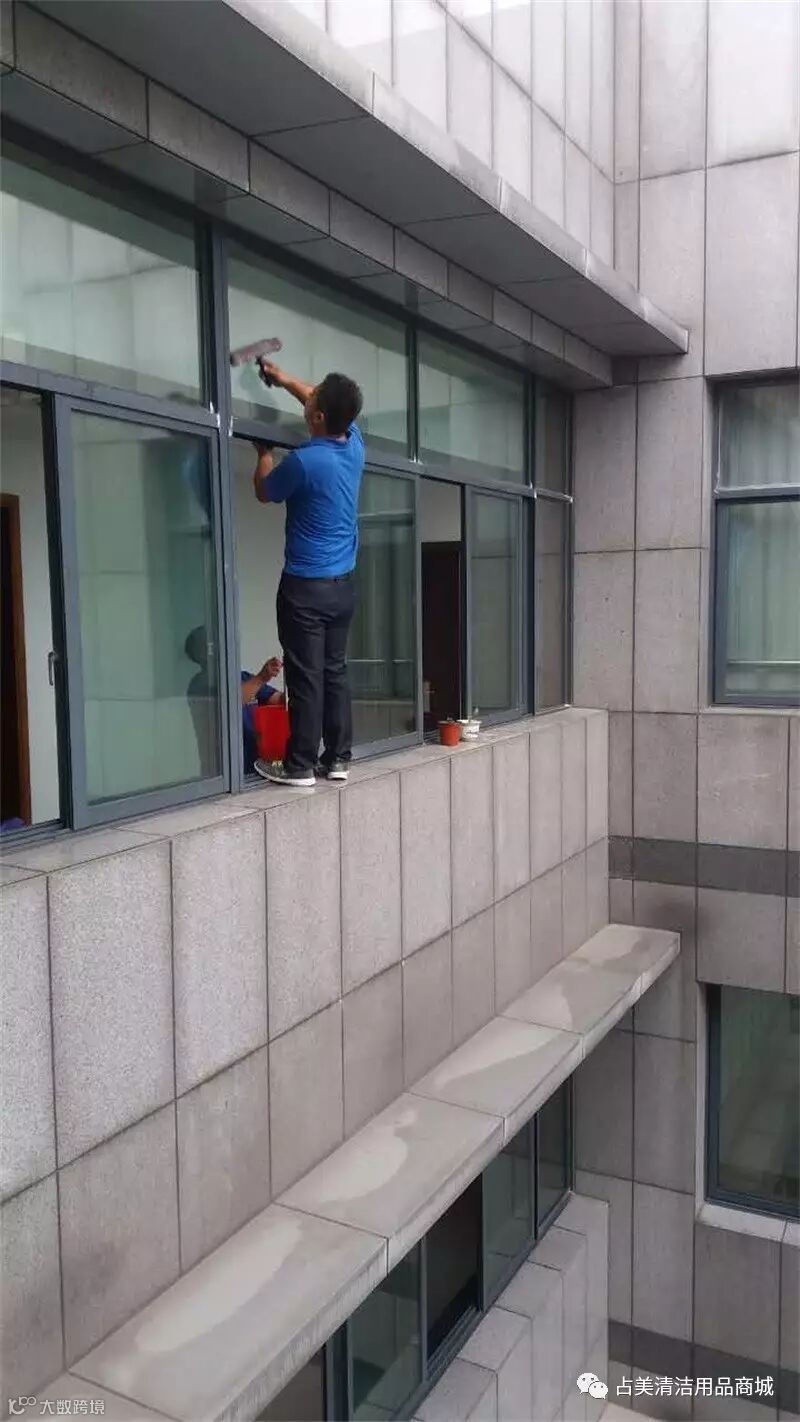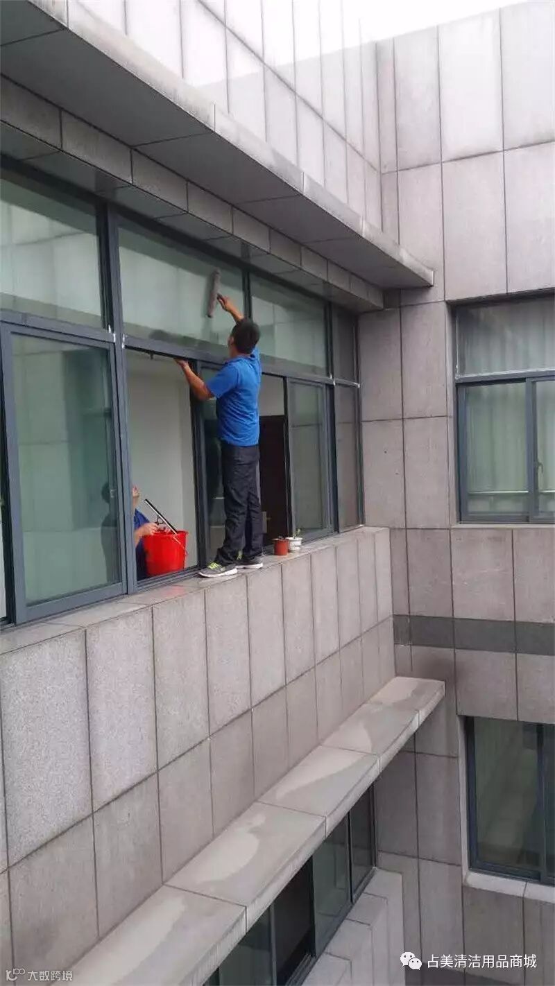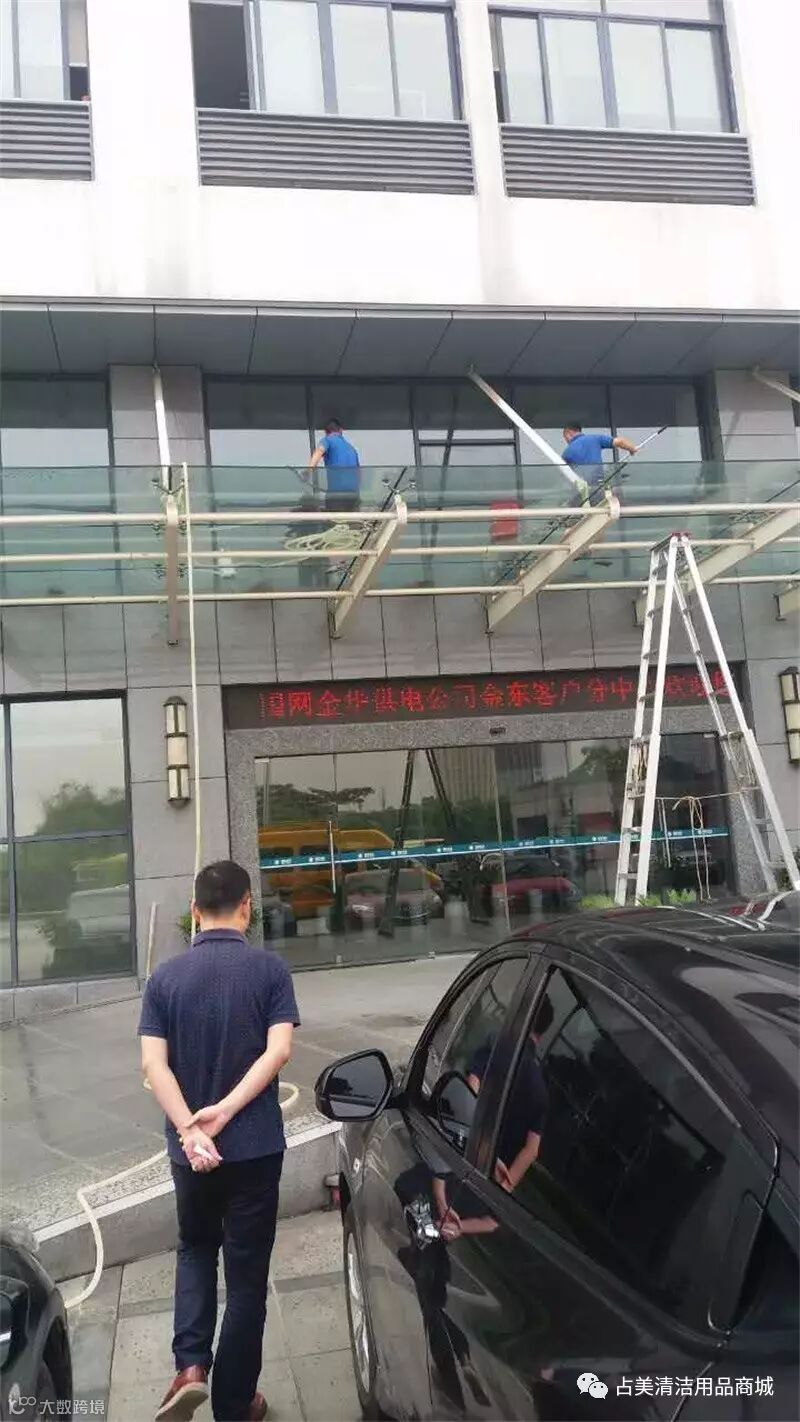 我们占美工程部的同事克服自身恐高的毛病,为金东电业局做好保洁服务工作。