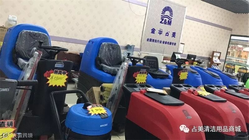 在占美公司大家庭里整齐摆放着容恩各种型号的洗地机,这次又增加了新成员。