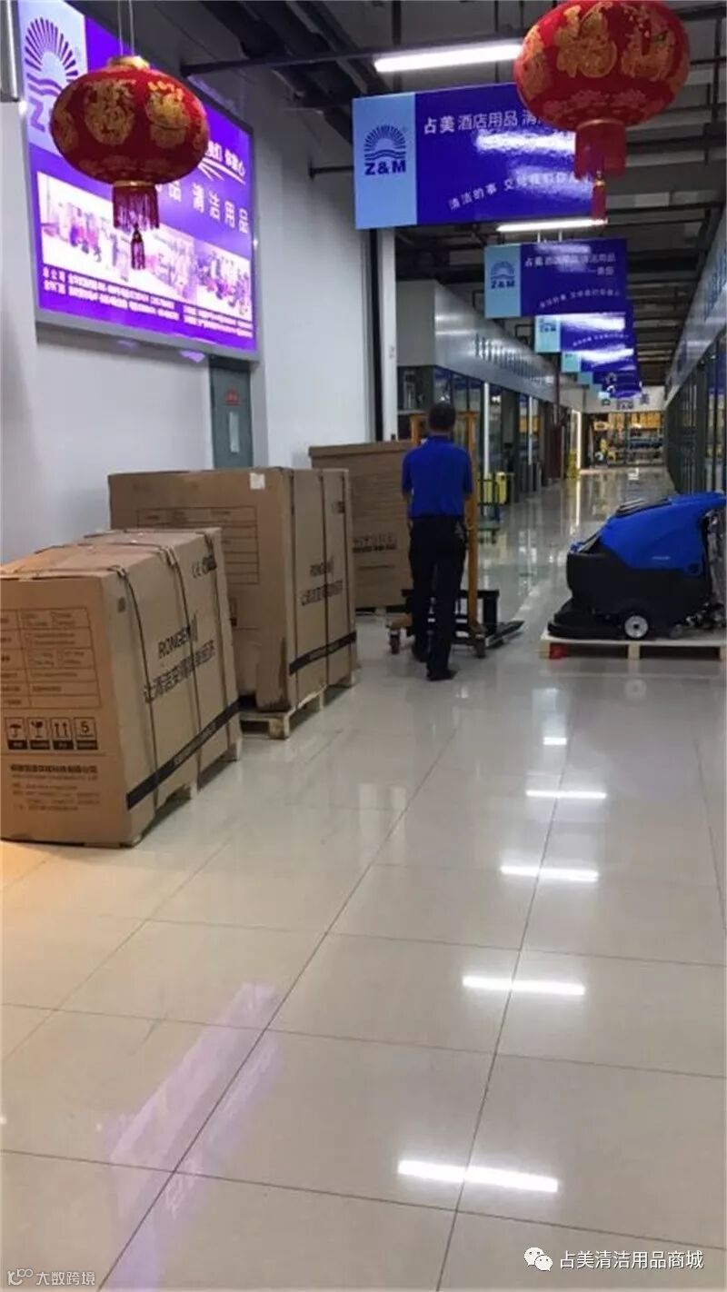 我们占美公司的同事正在把容恩洗地机拉回占美公司新农贸四楼店。