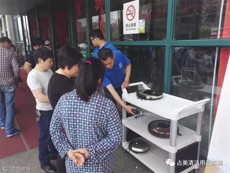 五一假期,占美公司的同事利用假期的时间来宣传智能扫地机器人。