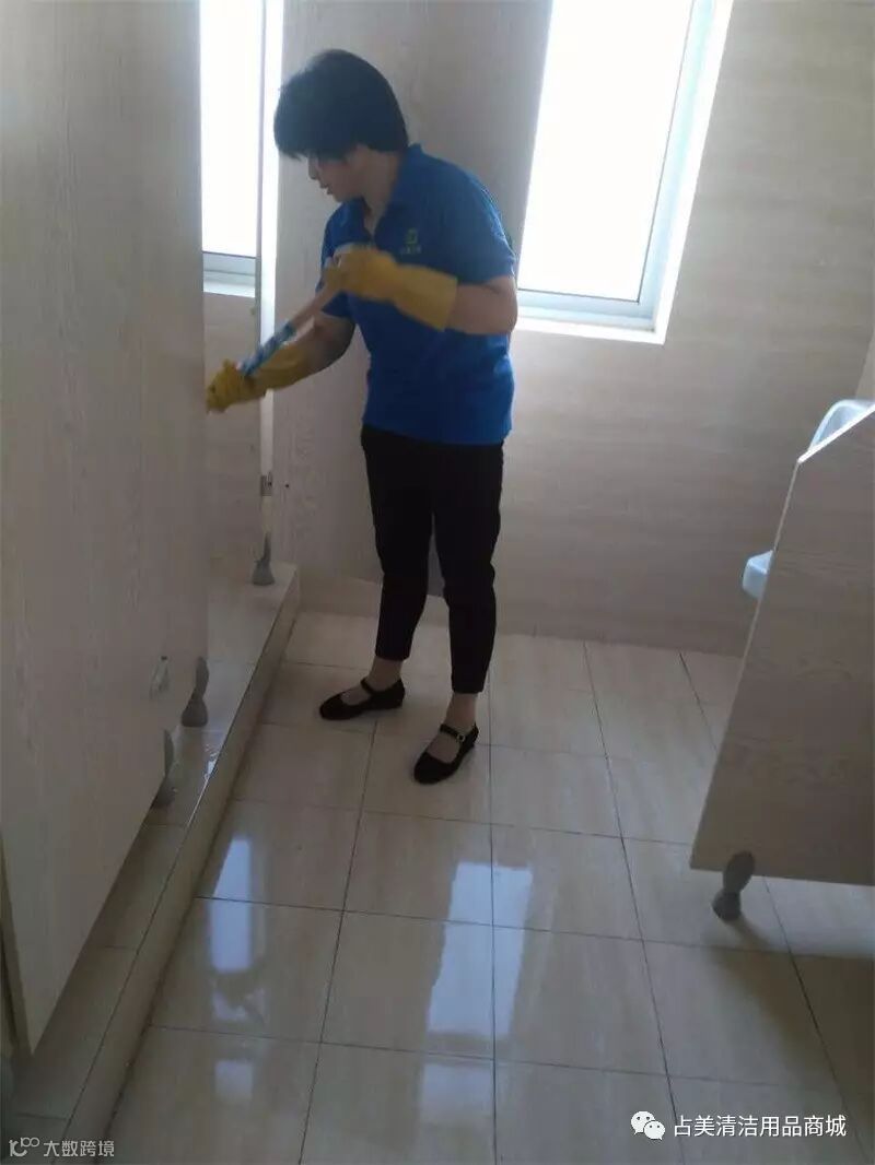 我们占美公司的保洁部同事按公司保洁标准在做保洁卫生。