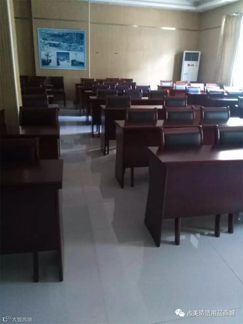 桌椅有序的摆放着,地面干净的犹如一面面闪闪发亮的镜子。