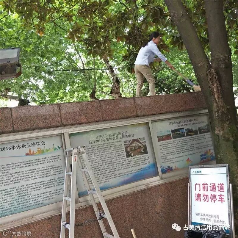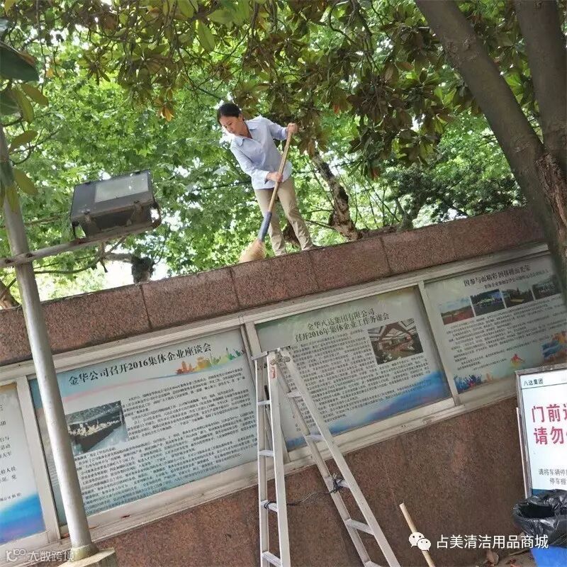 我们占美保洁点上的主管克服恐高,亲自上阵打扫卫生,做好领头模范,提高员工的自我工作意识,杜绝一切恶习。