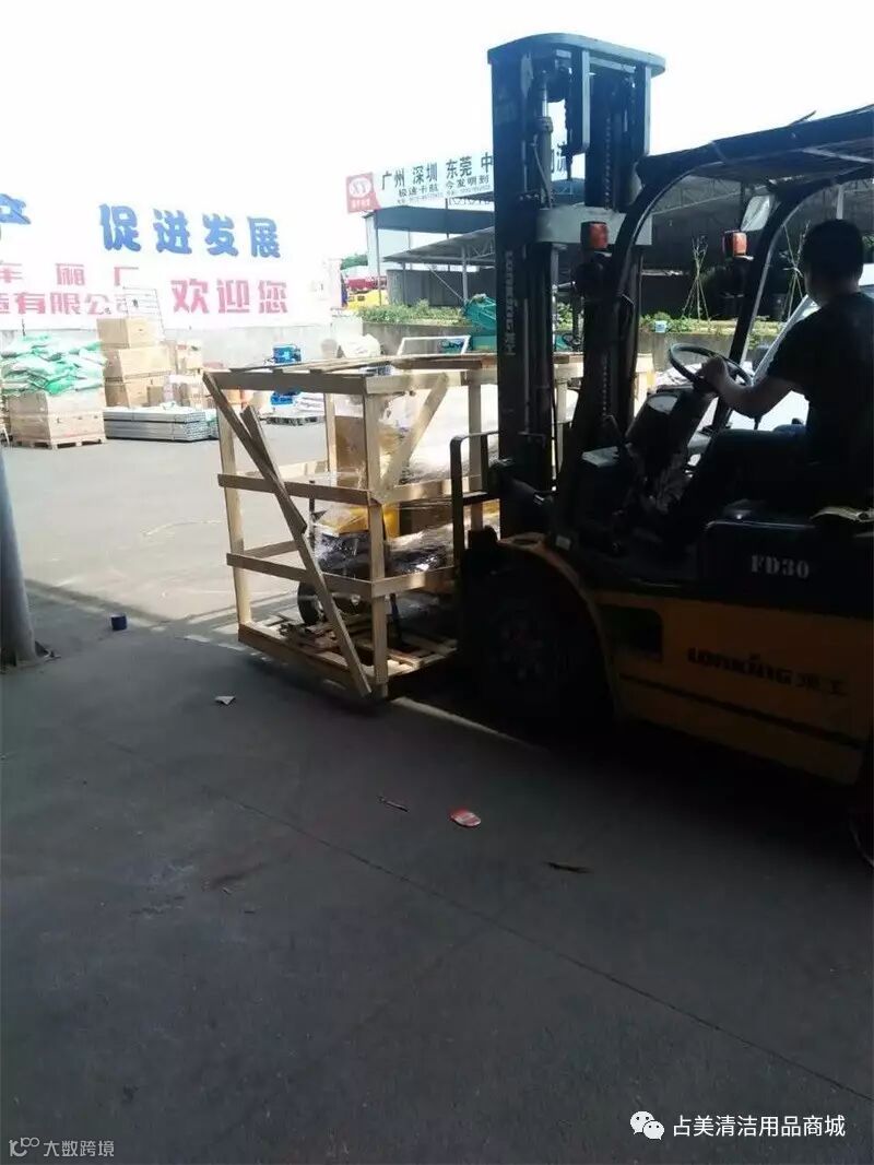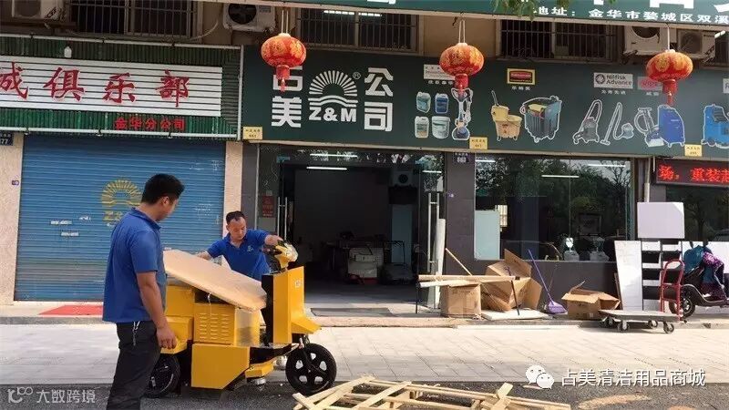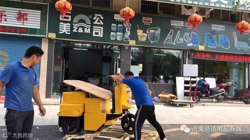 端午佳节之际,又一台邱潇—1清洁扫地车到了金华物流中心,公司的同事准备把它拉回老店。