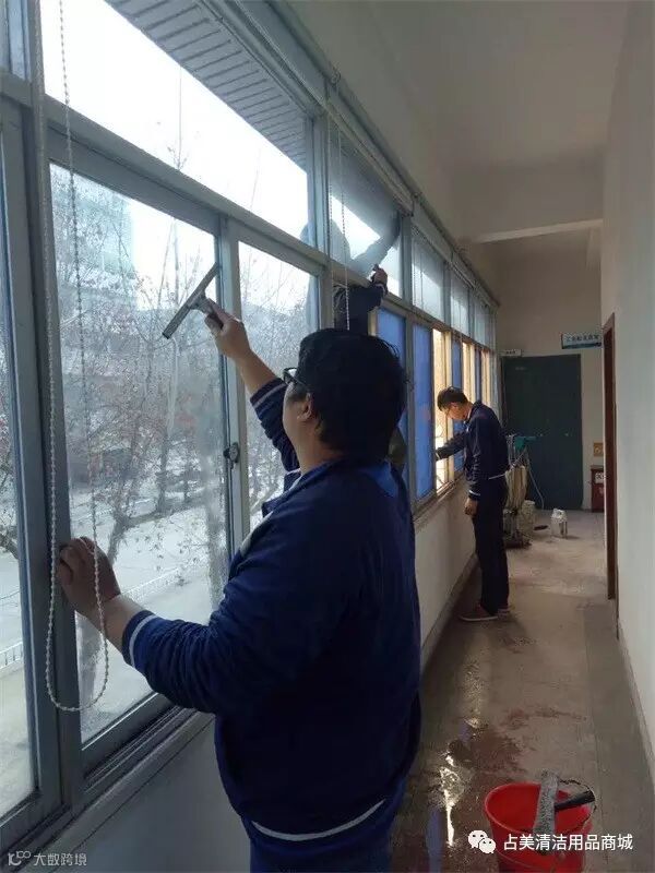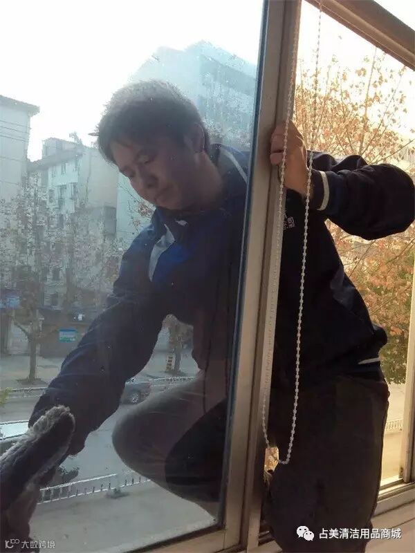 一般人不要模仿这样的擦玻璃动作哦~我们的员工是受过专门训练的~