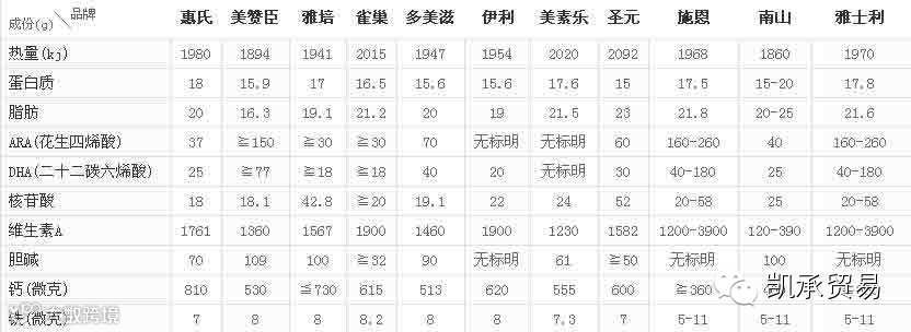 普通婴儿配方奶粉的主要成份