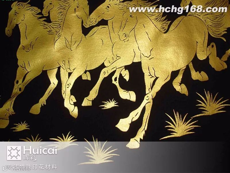其次,打底时,为了降低生产成本,提高竞争力,建议印花厂在使用中,可根据承印物的平面情况,先用透明浆打底,然后罩印仿烫金浆。