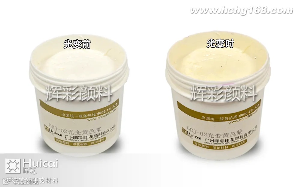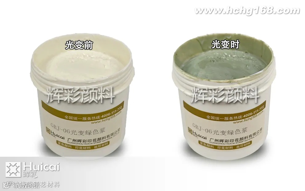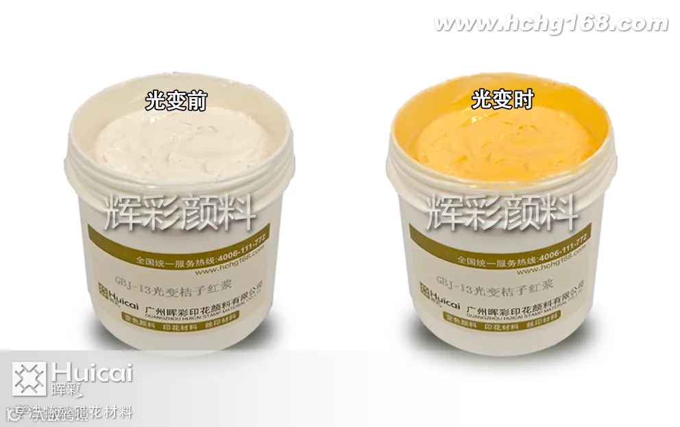 辉彩感光变色粉又称光变粉、光变颜料、光变色粉等辉彩光变粉其变色原理为吸收特定波长的紫外线光源,藉由该光源之能量而产生颜色变化变为黄色,当特定波长的紫外光源不在时,即恢复原来的白颜色。
