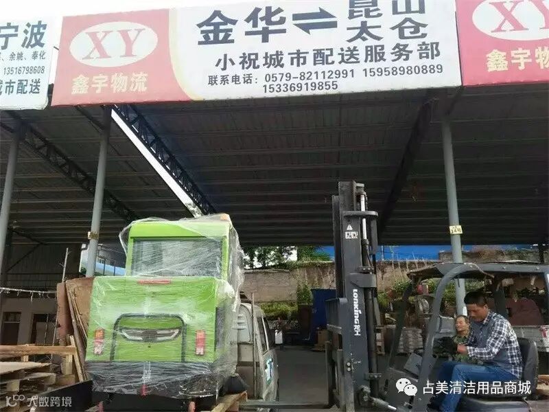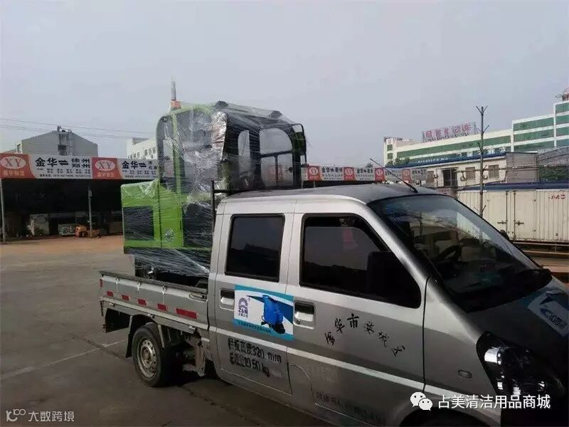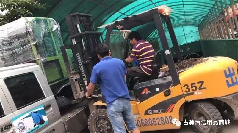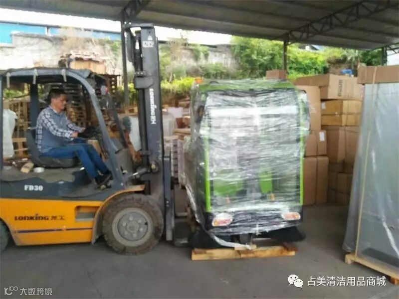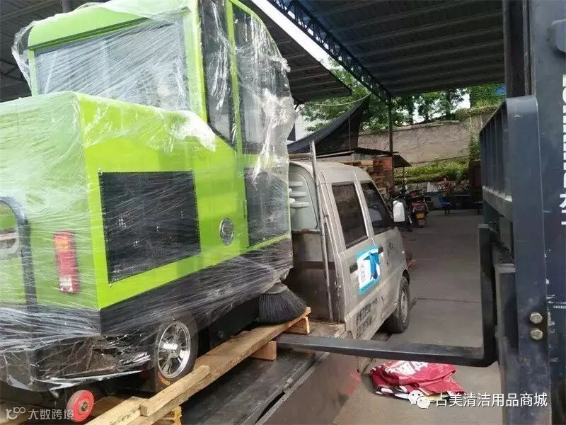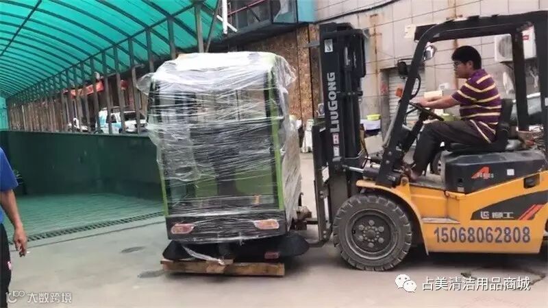 师傅把邱潇—2清洁车装上车,准备把它拉回占美这个大家庭里。