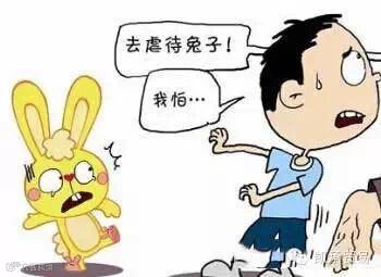 在小区里溜达时,看见一个小孩用手掐、用拳头打小兔子,很是残忍。上前询问原因,小孩答:“妈妈让我打的,我也不想打。”跟孩子妈妈聊天得知,这位母亲觉得儿子胆子太小,就想到用这个方法来锻炼他的胆量。