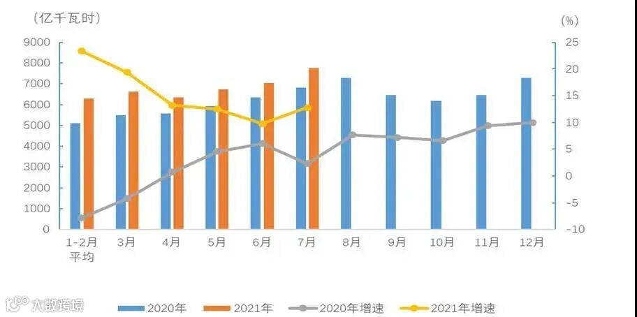 中电联发布2021年1-7月电力消费情况:全社会用电量延续快速增长态势
