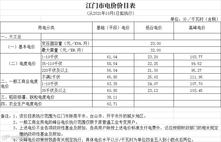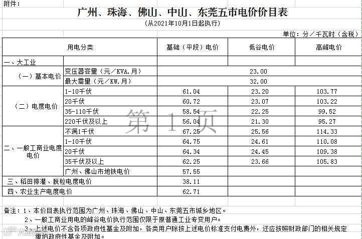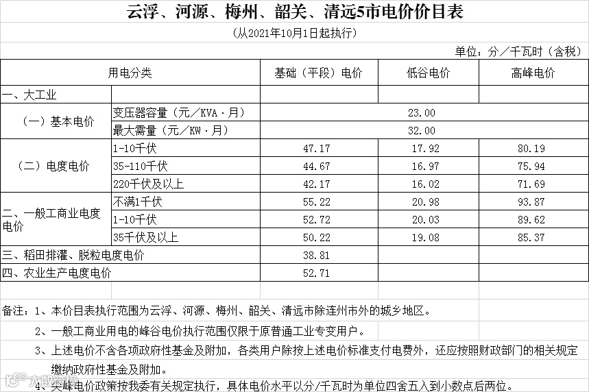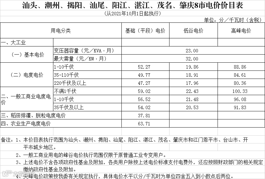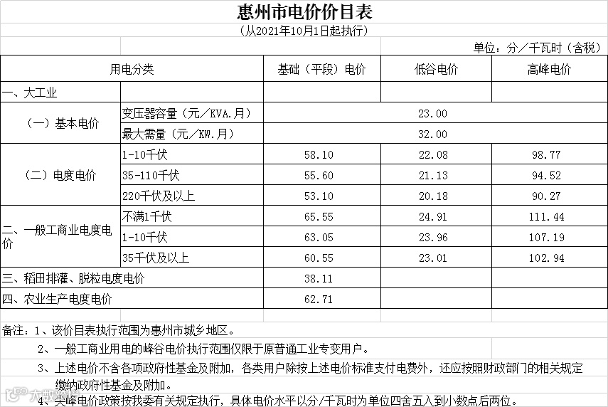 附件2.惠州市电价表及峰谷电价表2021年10月.xls