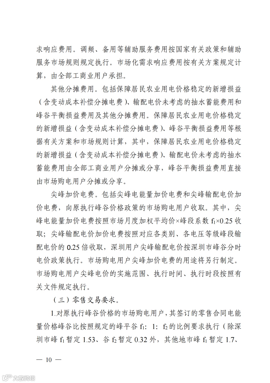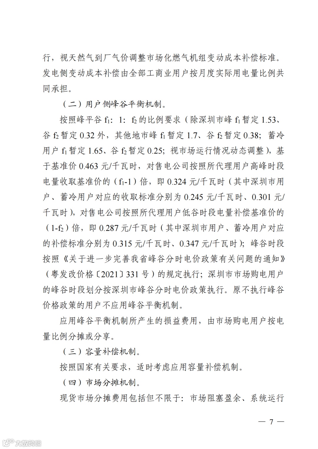 对原执行峰谷价格的市场购电用户,其签订的零售合同电能量价格峰谷比按照规定的峰平谷f1:1:f2的比例要求执行(广东(不含深圳)暂定1.7:1:0.38,深圳暂定1.53:1:0.32,蓄冷用户暂定1.65:1:0.25);