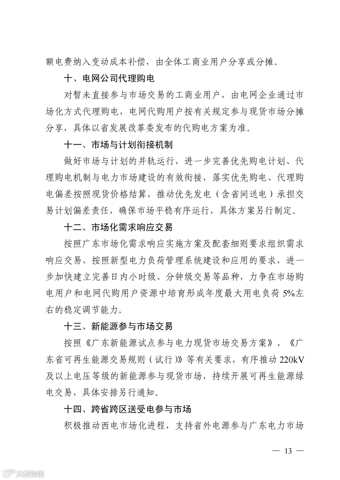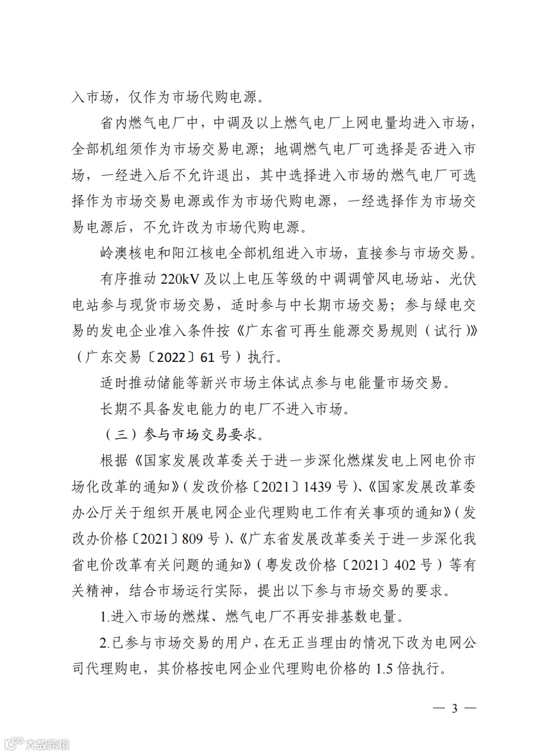 按照《广东新能源试点参与电力现货市场交易方案》、《广东省可再生能源交易规则(试行)》等有关要求,有序推动 220kV及以上电压等级的新能源参与现货市场,持续开展可再生能源绿电交易,具体安排另行通知。