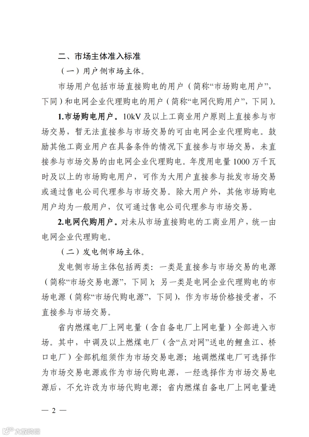 工商业参与市场要求