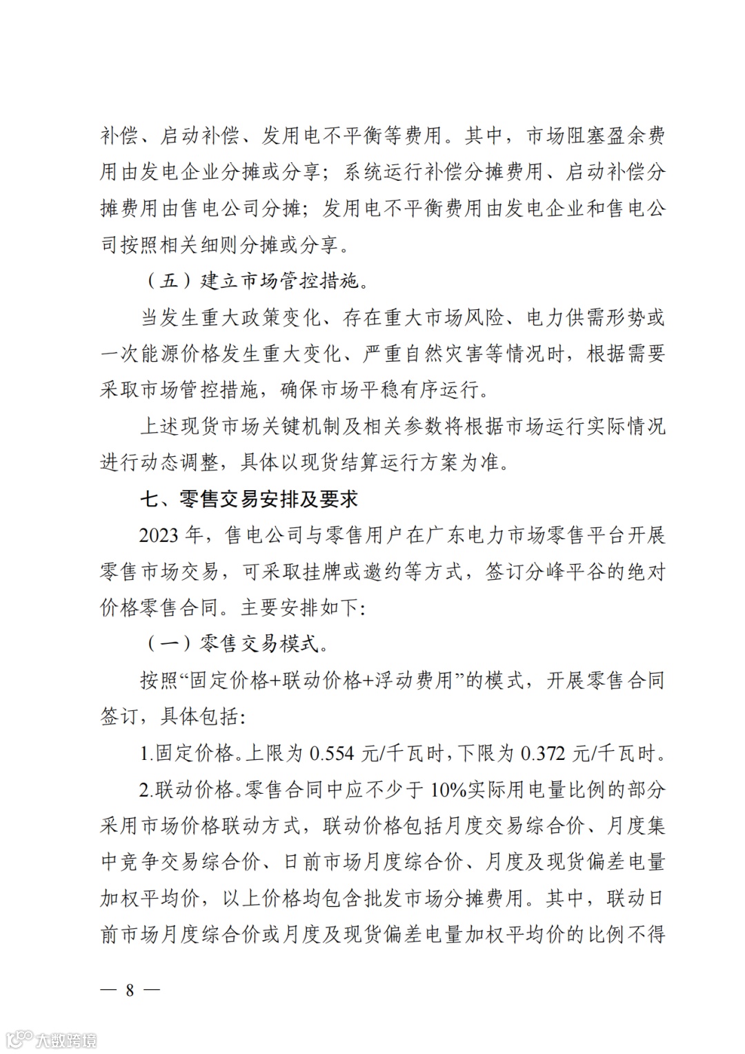 ●市场购电的高耗能用户交易电价不受上浮20%限制,已参与市场购电的高耗能用户不得退出市场交易;