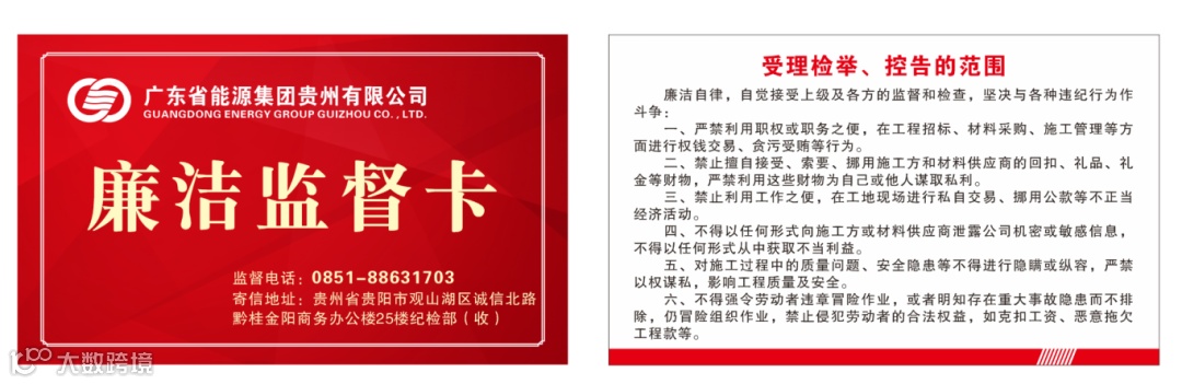 此外,公司纪委认真开展重点项目监督防控廉洁风险工作,针对公司项目“小散远偏”及建设领域廉洁风险易发多发特点,纪委在监督检查过程中向施工人员、运营外包单位人员发放清廉监督卡,宣传优化营商环境政策、畅通信访举报渠道,对一线工作人员开展廉洁提醒、廉洁谈话,向公司全体员工发出廉洁过节“提醒函”,引导广大党员干部自觉把好节日“廉洁关”。