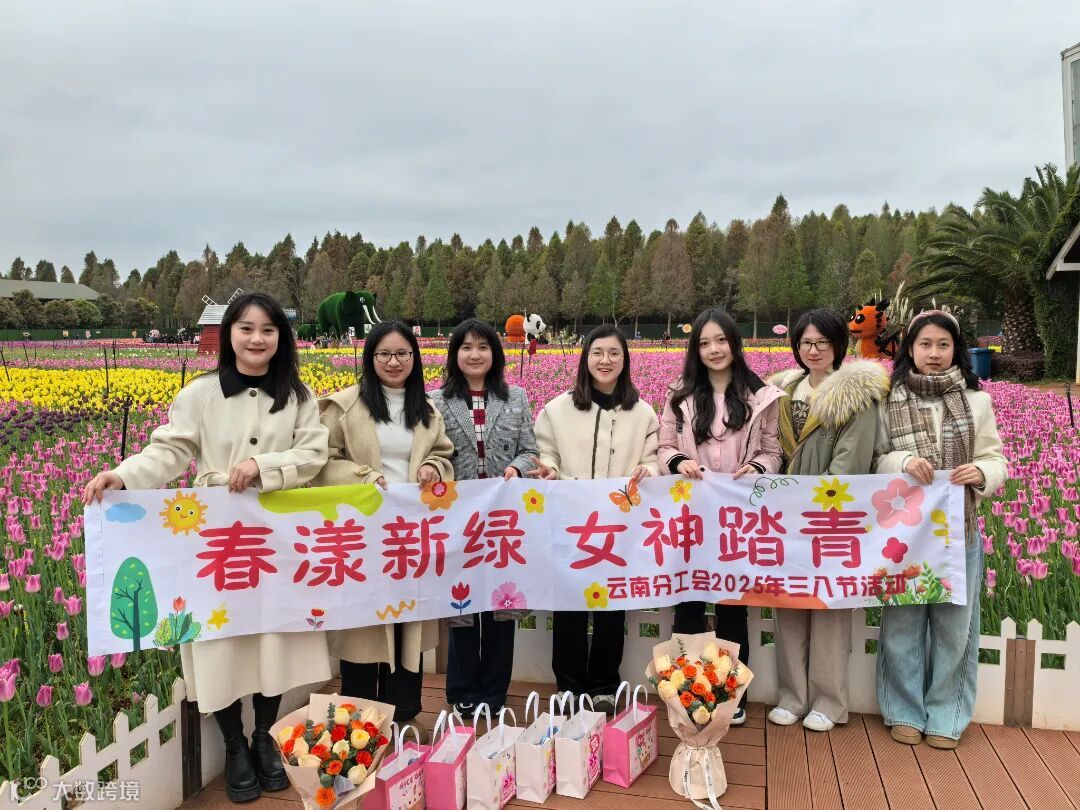 云南分公司组织了以“春漾新绿 女神踏青”为主题的“三·八”节活动,全体女职工共同前往捞鱼河湿地公园赏花踏青。徒步结束后,大家还组织了丰富多彩的趣味游戏和团队互动活动,现场气氛热烈,笑声不断。