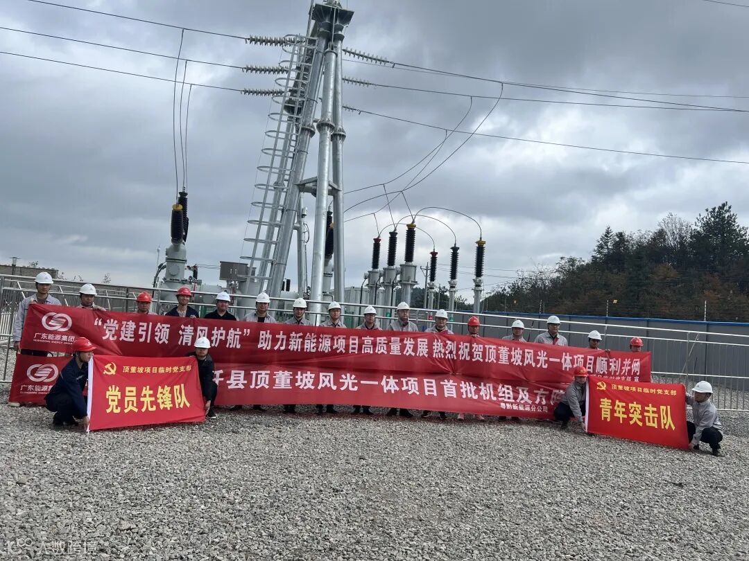 项目自开工建设以来,贵州公司和粤黔新能源分公司高度重视,积极发挥党建引领作用,立足工程建设的实际,与各参建单位共同成立顶董坡项目临时党支部,打造贵州公司党风廉政建设示范基建项目,组织专业骨干成立青年突击队、党员先锋队,发挥党员先锋模范作用。项目部克服前期征地难度大,建设期道路窄平台场地小,风机叶片运输吊装困难等重重阻力,在做好安全、质量管理的基础上,有序推进项目建设工作,顺利实现并网发电。