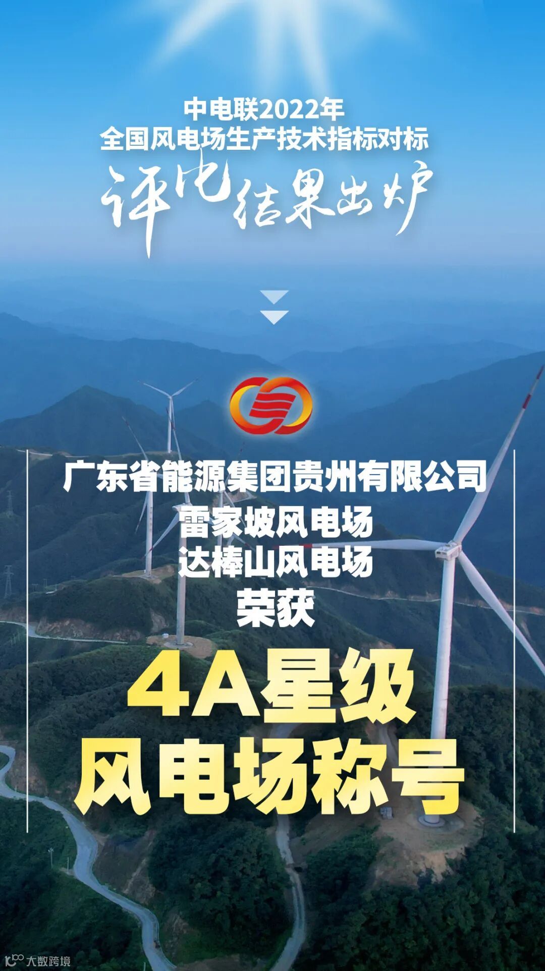近日,中国电力企业联合会2022年度全国电力行业风电运行指标对标评比结果出炉,贵州公司所属从江分公司雷家坡风电场、达棒山风电场在本次对标评比中荣获南方地区贵州省4A星级风电场。