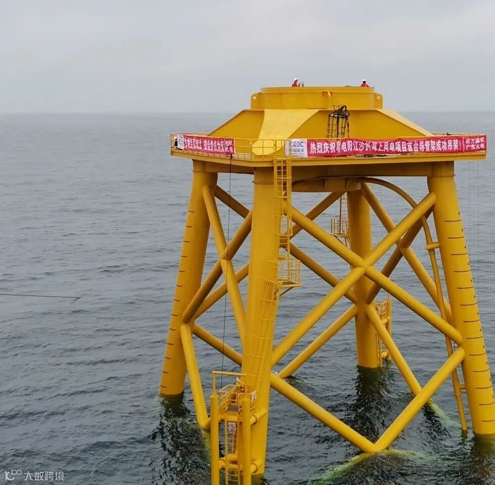 该四桩导管架总高约为51.2米,总重约为937吨,是目前国内最大最重的海上风机基础导管架之一,安装广东火电第一个承接的海上风电主体工程-阳江沙扒海上风电项目21号机位,为公司后续其他海上项目的导管桩安装积累丰富的海上作业经验。