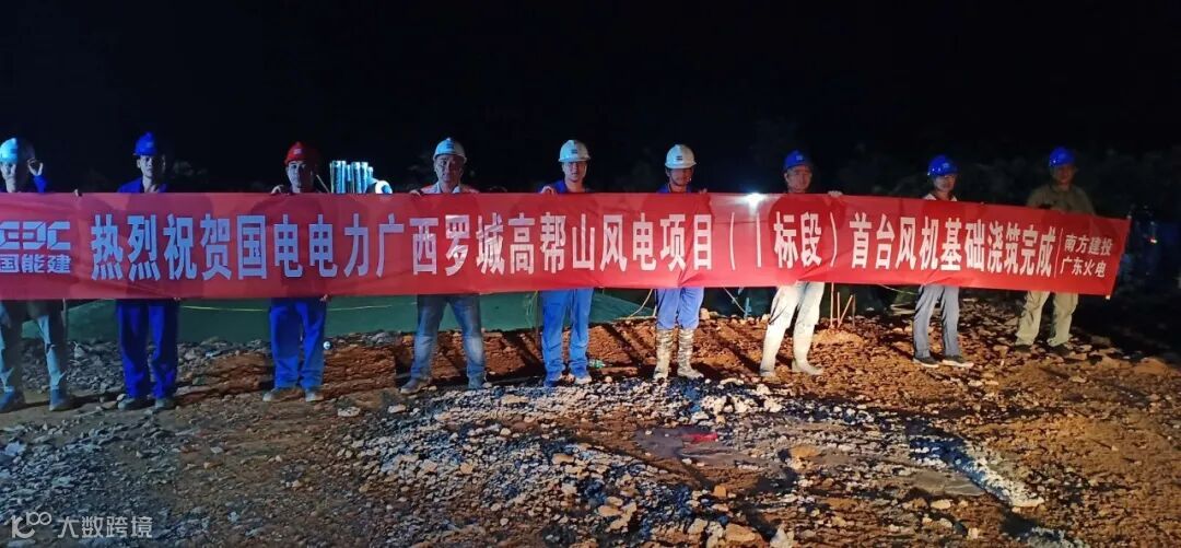 6月30日,广西罗城高帮山风电项目首台基础浇筑完成,为为后续的风机基础浇筑工作奠定坚实的基础。