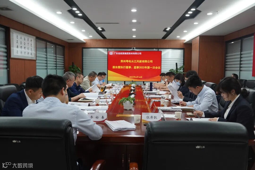 6月16日上午,贵州公司风电管理中心所辖贵州粤电从江风能有限公司、贵州粤电从江秀塘风能有限公司、贵州粤电遵义风能有限公司、贵州粤电石阡风能有限公司及贵州粤电六盘水综合能源有限公司(以下简称“五家公司”)股东会暨执行董事会、监事会2022年第一次现场会议在贵州省贵阳市顺利召开。会议由风电管理中心党支部书记、总经理冯金山主持,各股东公司代表、董事、监事出席会议,贵州公司党委副书记、纪委书记、工会主席牛建平,安全总监刘桂林,粤黔公司副总经理、售电公司总经理匡衡及贵州公司相关职能部门负责人列席会议。