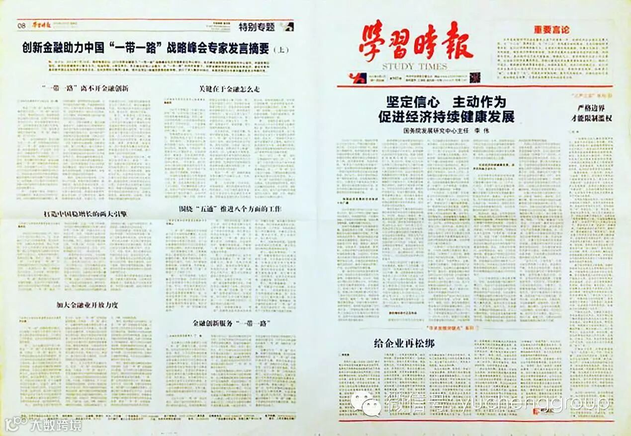 8月6日、10日,国内外公开发行的全党唯一专门讲学习的报纸《学习时报》,分两整版对国研智库论坛⋅2015创新金融助力“一带一路”战略峰会进行了大篇幅报道。本次峰会由国务院发展研究中心指导,中国发展出版社、新华社新媒体中心联合主办,钰诚控股、e租宝承办。