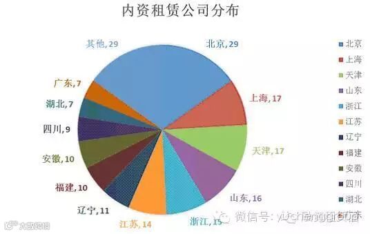 从分布地区看,现有的191家内资试点租赁公司分布于全国26个省级行政区域,其中北京最多有29家,上海、天津、山东、浙江、江苏、辽宁、福建、安徽均超过10家。