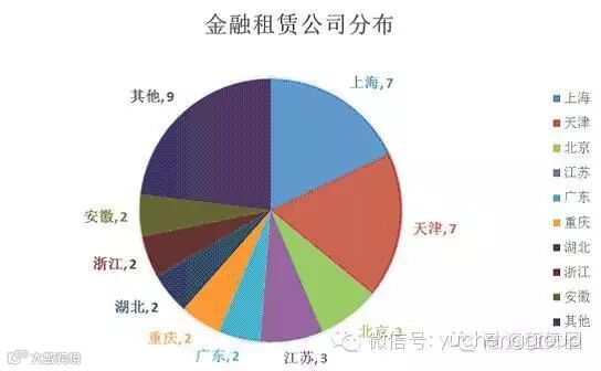从地区分布看,金融租赁公司仍集中分布于上海和天津两地。湖北、浙江、安徽三省已均有2家金融租赁公司,其他的9家金融租赁公司分别成立于山西、广西等9个地区。