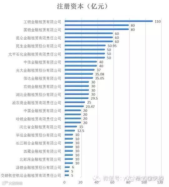 截至2015年6月底,在开业的所有外资租赁公司中平安国际融资租赁有限公司以注册资本93亿元人民币位居第一。在全部2721家外资租赁公司中,注册资本超10亿元人民币的公司为104家,占外资租赁公司总数的3.82%。