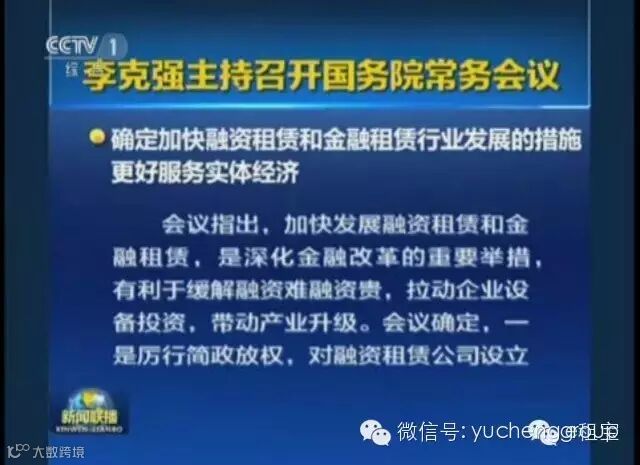 国务院总理李克强8月26日主持召开国务院常务会议,其中一项重要议题是:确定加快融资租赁和金融租赁行业发展的措施,更好服务实体经济。