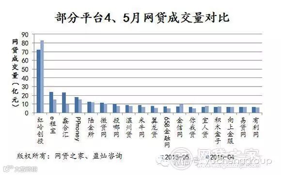 5月,P2P网贷成交量前三位的平台分别为红岭创投、e租宝和鑫合汇。值得一提的是,e租宝、鑫合汇的成交量涨幅明显,环比4月分别增长58.04%和131.88%,而红岭创投成交量环比4月下降了13.07%。