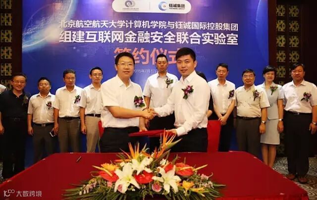 2015年7月17日,钰诚国际控股集团限公司(以下简称“钰诚集团”)与北京航空航天大学计算机学院合作共建互联网金融安全联合实验室的签约暨揭牌仪式在京举办。钰城集团首席行政官路涛、电子商务运营部总经理齐松岩一行领导与来自北京航空航天大学等高校的领导、专家、学者共同参加了仪式,国内首家互联网金融安全联合实验室正式揭牌成立。
