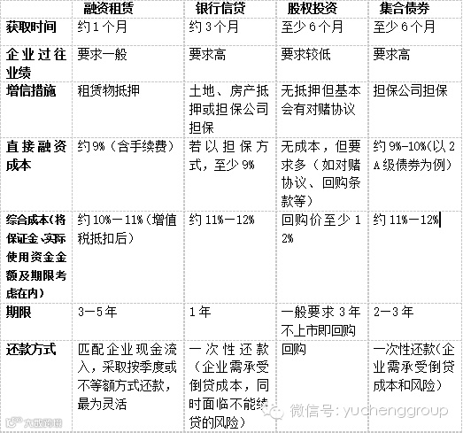 下面从中小企业融资时最关心的7个方面对这四种方式进行比较。