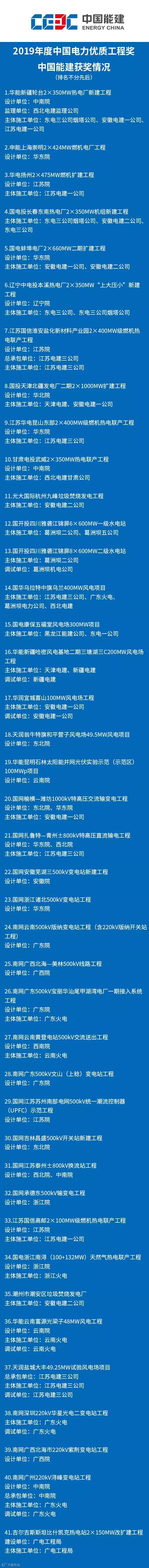 近日,中国电力建设企业协会公布了2019年度中国电力优质工程评审结果,中国能建以工程总承包、设计、施工、监理、调试等方式承(参)建的41项工程榜上有名,占获奖工程总数68项的60%,展示了中国能建的质量实力和品牌形象。