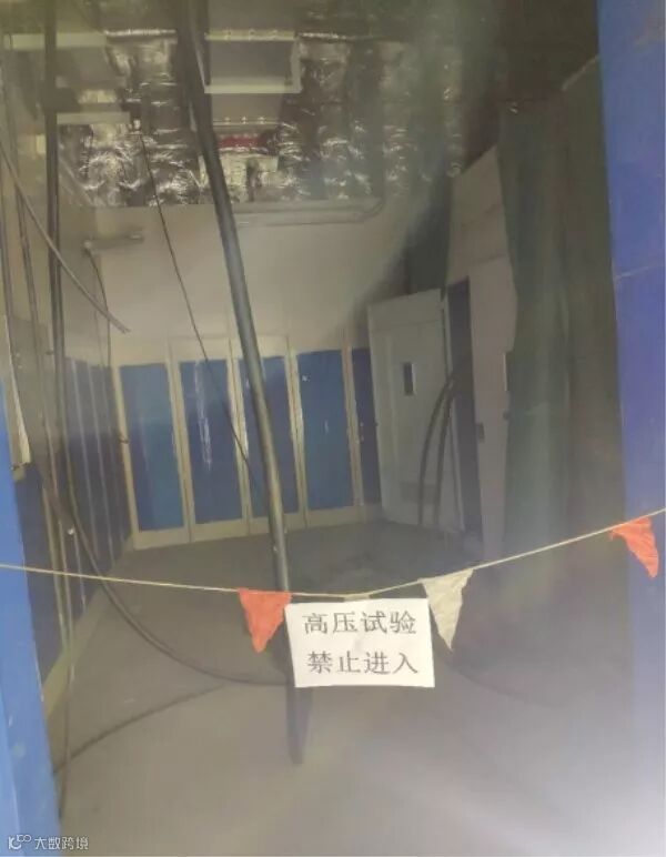 28日傍晚,在大多数工人下班离开了升压站后,我们开始了耐压试验的工作。首先建立隔离带,并在试验相关的隔间外布置试验警告提示牌,确保过往的其他人员能够获悉情况。下一步即是检查设备接地,以及正确完成试验所需的接线步骤,确保试验稳定可靠地进行并确保所有人员的人身安全。
