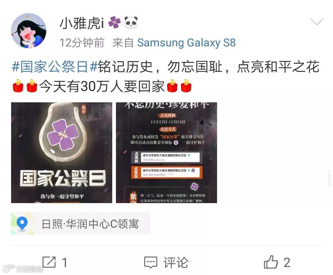 在去年公祭日当天,这张催泪的漫画以极快的速度在所有网络平台传播开来,人们既感动又心酸,写下“勿忘国耻,珍惜和平”等留言,纷纷转发。