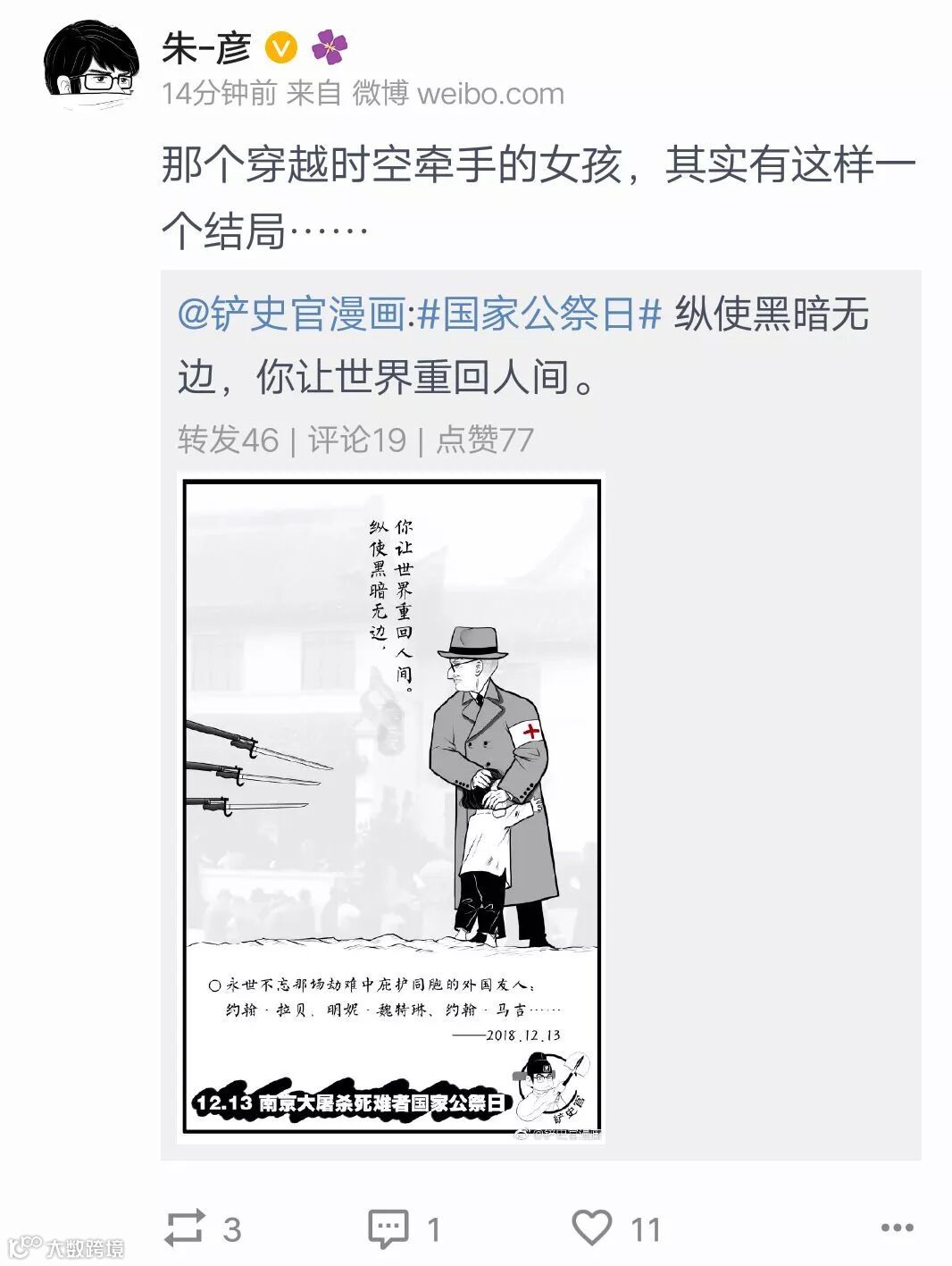 还有很多公众号、微博私信朱彦,询问能否使用这张图,朱彦所有的回复只有一句话,“不用问我,直接用,版权属于全体中国人。”因为这张漫画的创作意图只有一个——希望人们永远铭记历史。