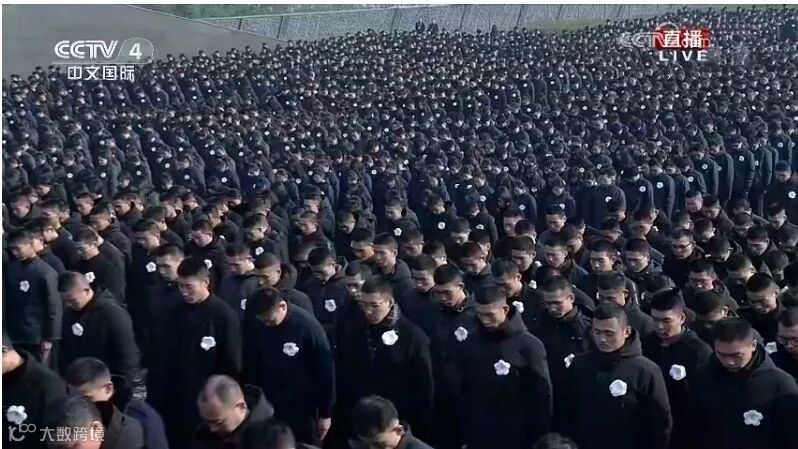 10点01分,仪式现场拉响防空警报,全场默哀。