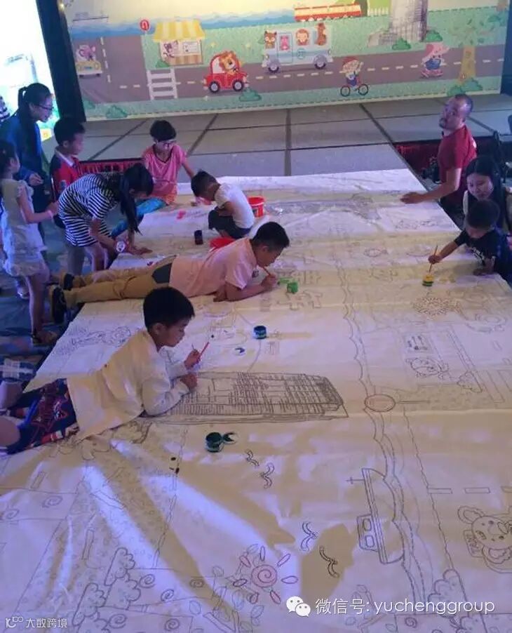 小朋友全情投入到巨幅“作画”中