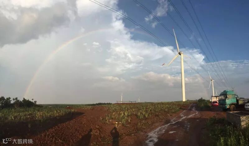 丰收光伏项目风雨过后,屹立的风机与靓丽的彩虹交相辉映