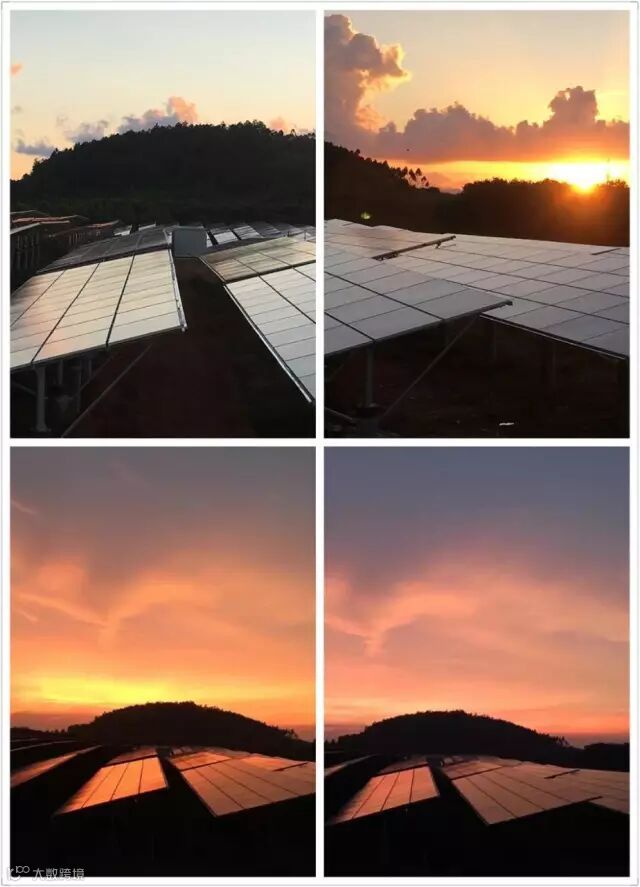 让我们一起欣赏一下夕阳下的光伏组件,这都是阳西织篢光伏项目部可爱的员工用一滴滴汗水换来的美丽新能源。