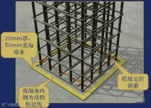5、防跑浆措施:安装模板前,模板的承垫底部先垫上20mm厚海绵条,底部严重不平的,沿模板内边线用1∶3水泥砂浆找平。外墙、外柱的外边根部根据标高线在模板底部粘贴10mm厚海绵条,以确保不漏浆。