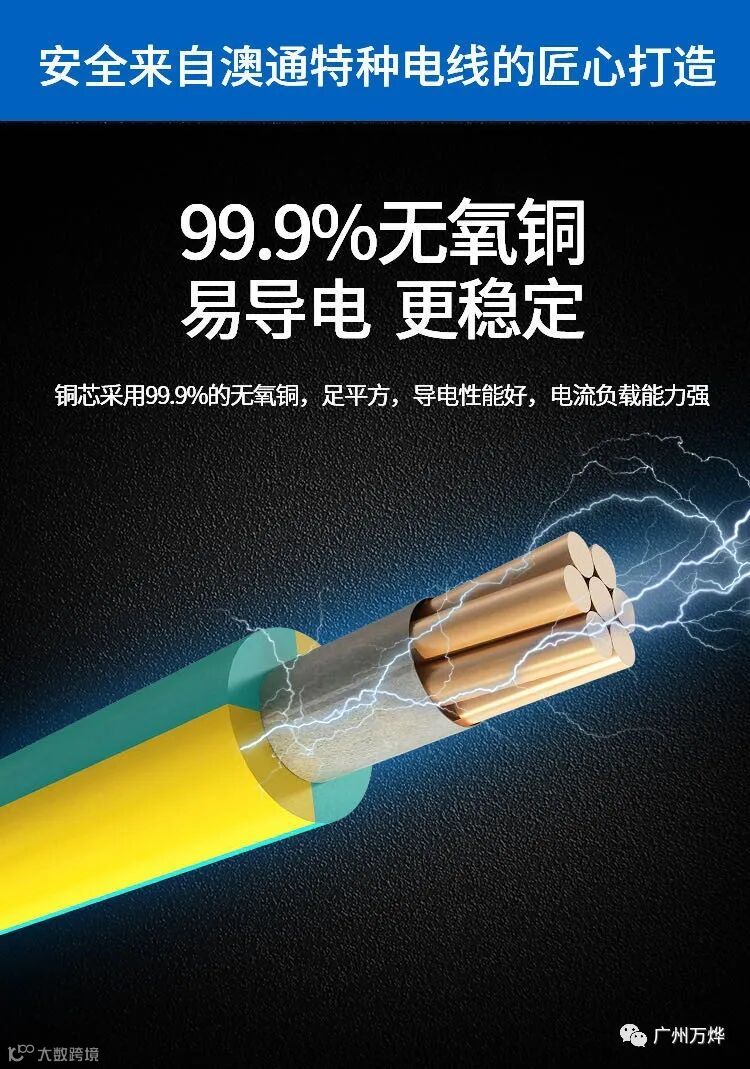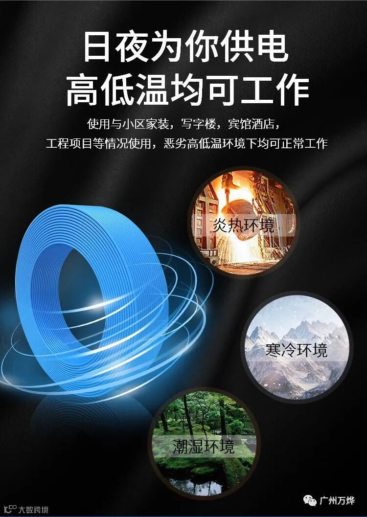 广州万烨此电线阻燃性能高,绝缘安全,不易点燃,离火即灭,有效阻止火势蔓延。绝缘层采用125°辐照交联低烟无卤材料,远高于普通电线的70°,遇火安全自熄灭,大大降低了短路引起的火宅概率,即使被明火燃烧时,释放的也是二氧化碳和水蒸气无毒环保气体。