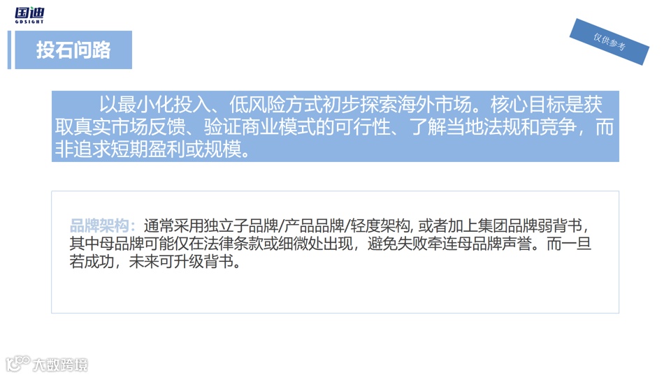当企业初次踏足海外市场时,就像一位探险家进入未知领域,既充满期待又必须保持谨慎。这个阶段的战略重点不是追求规模与利润,而是用最小的代价获取最真实的市场反馈。此时的品牌架构,更像是一套防护服,既要允许企业在市场中自由探索,又要提供必要的保护。
