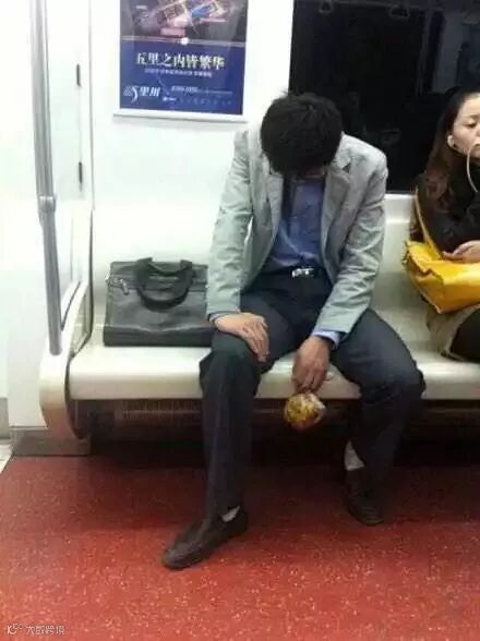 地铁上,一个男人累得低着头就睡着了,手里紧紧握着一个饼夹菜,就在刚刚,他跟母亲通电话,说他正在旅游,吃大餐,让母亲注意身体,不要总是惦记他。