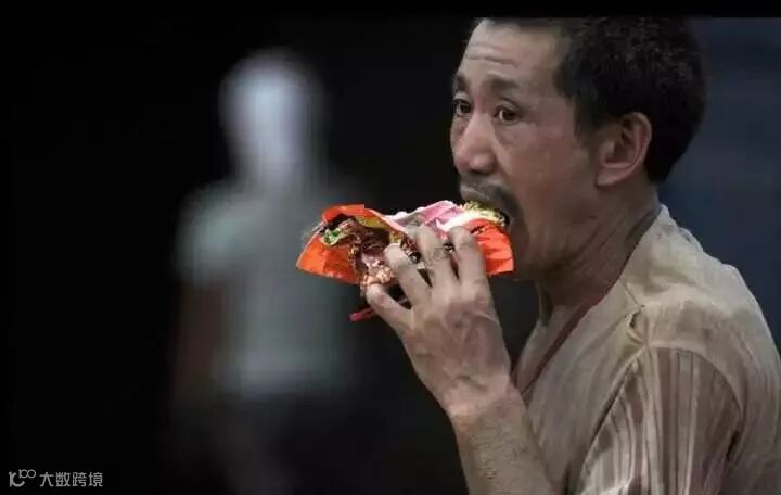 这不是一个拾荒者,这是一个在工地干活的农民工,太饿了,大口大口吃着方便面。