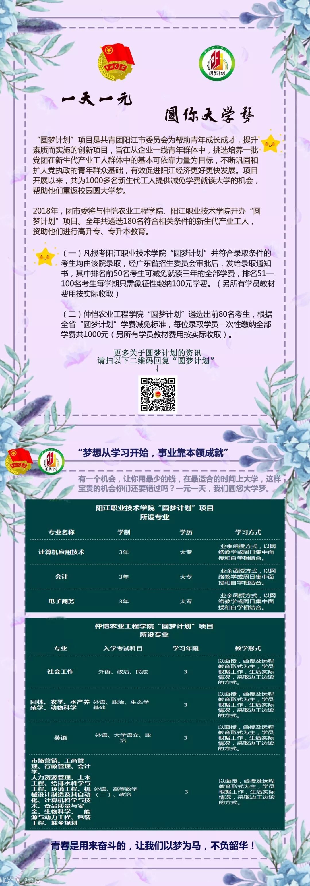 “圆梦计划”是我省为了帮助更多新生代产业工人提升素质、丰富知识,帮助青年职工圆大学梦而实施的一个项目。